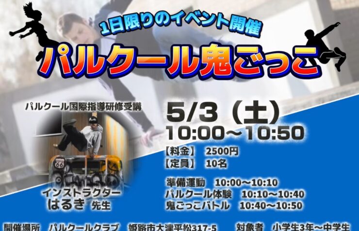【GWイベント】パルクール鬼ごっこ・バク転教室のお知らせ